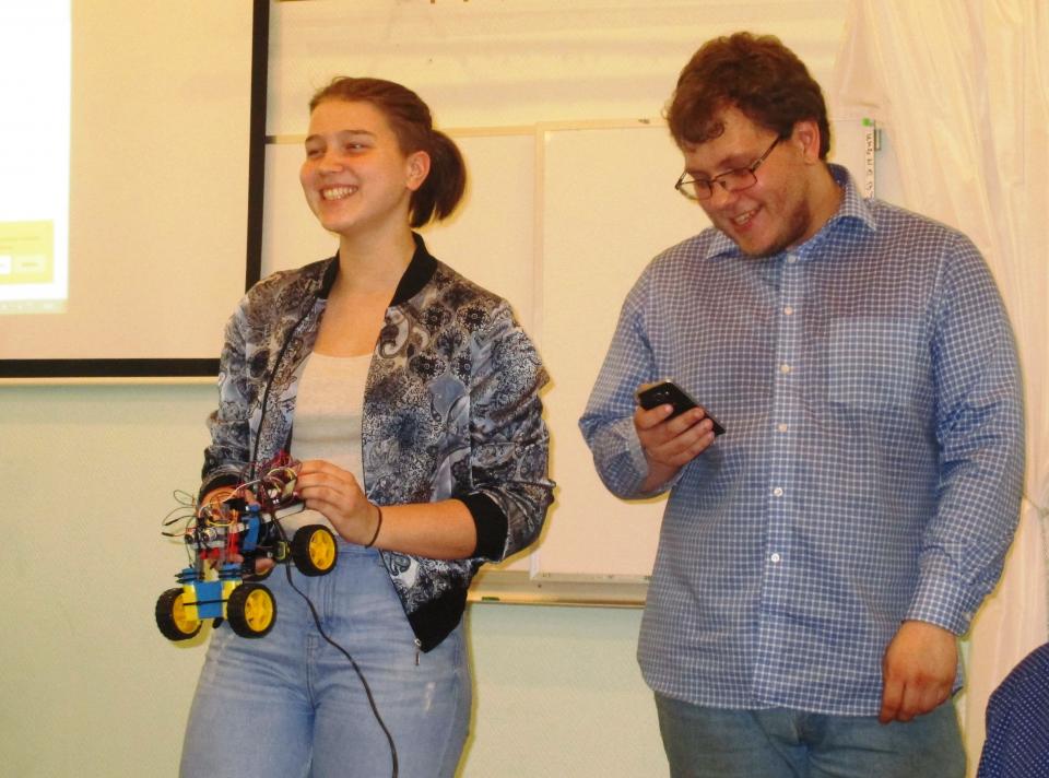 Обучающиеся кружков «Научим робота думать», «Собираем работа» представляли своих роботов.