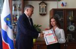 24 июня 2020 года, обучающаяся МБОУ "Лицей г. Отрадное" Александра Микушева – победитель регионального конкурса сочинений и рисунков "Моя семья в годы Великой Отечественной войны", приняла участие в торжественных мероприятиях к 75-летию Парада Победы в Луге. Здесь же из рук главы региона Александра Дрозденко получила памятные призы. Отметим, что в конкурсе «Моя семья в годы войны» приняли участие свыше трех тысяч школьников – ученики общеобразовательных школ, школ-интернатов, учреждений дополнительного образования, клубов и других детских организаций Ленинградской области.