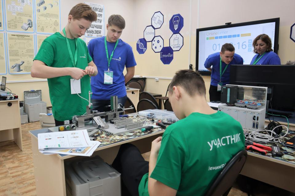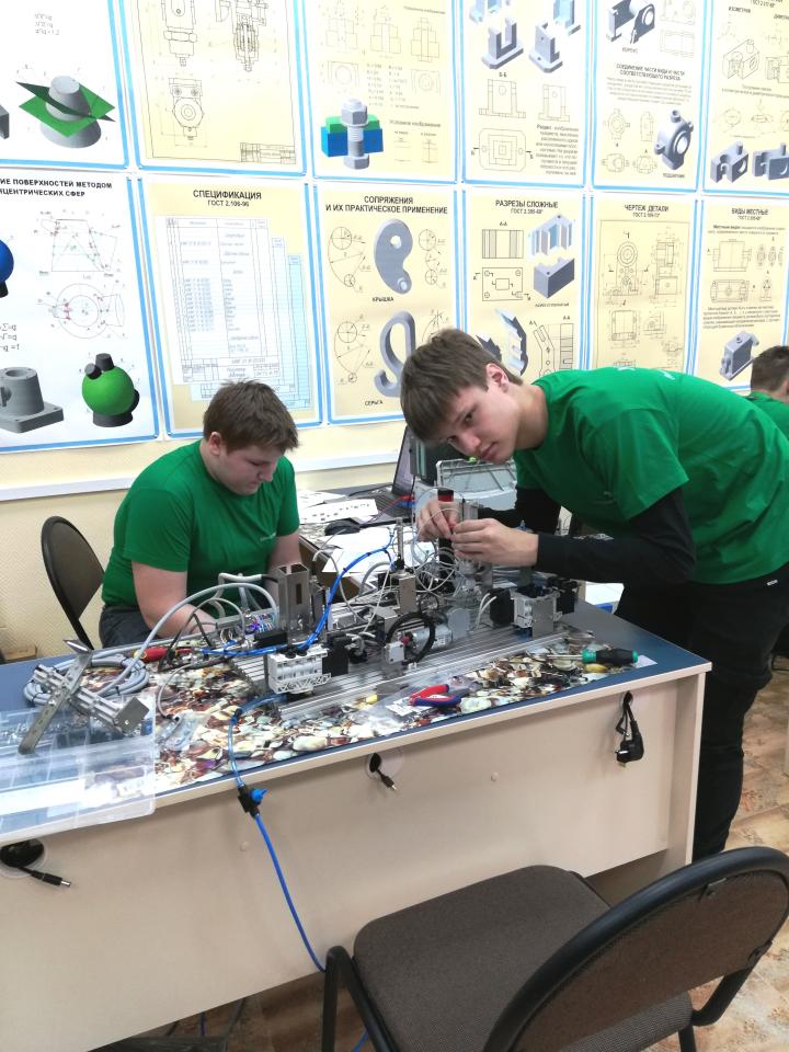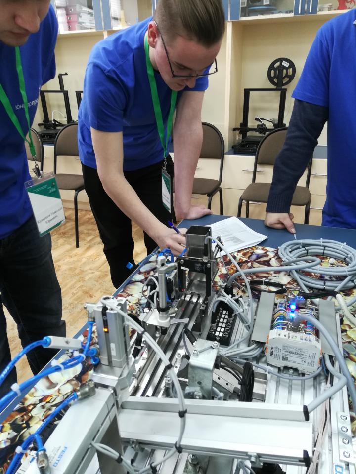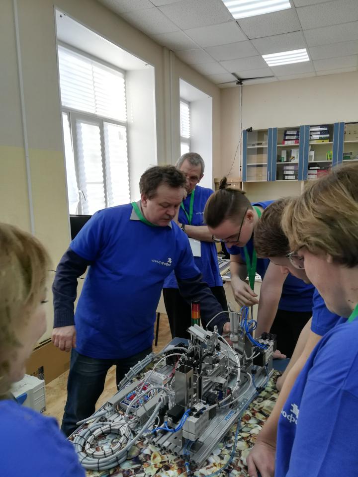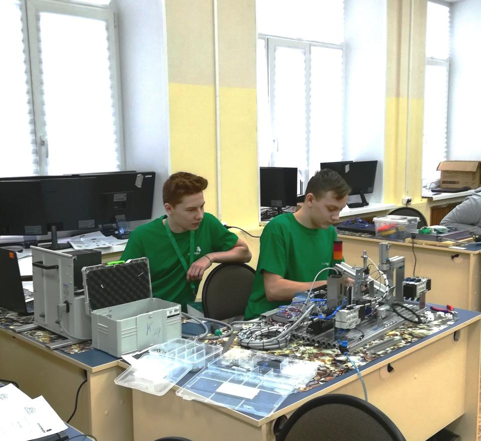 Участники чемпионата - это школьники в двух возрастной категории 14+, которые умеют не только собрать модель производственной линии, но и выполнить пуско-наладочные работы. Станция должна выдавать заготовки на конвейерную ленту и сортировать согласно материалу и цвету. Модуль упаковки должен накрывать заготовки крышками согласно заданному алгоритму управления. Кроме того, необходимо оптимизировать техпроцесс с целью производства 4 деталей в минимально короткие сроки.