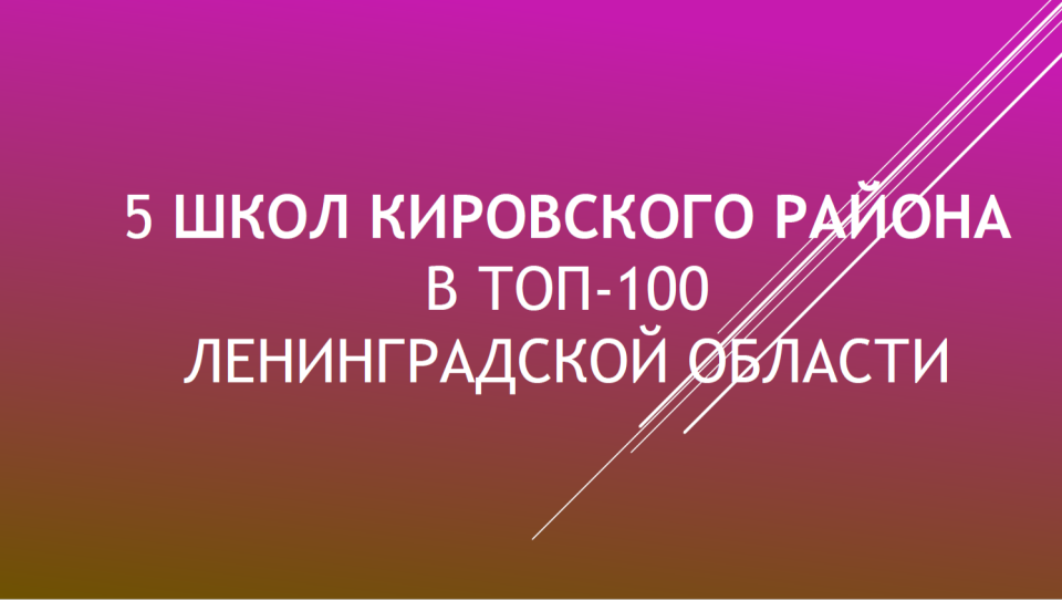 В перечень 100 школ с лучшими результатами вошли 5 общеобразовательных организаций Кировского муниципального района Ленинградской области, которые продемонстрировали высокий уровень образования: