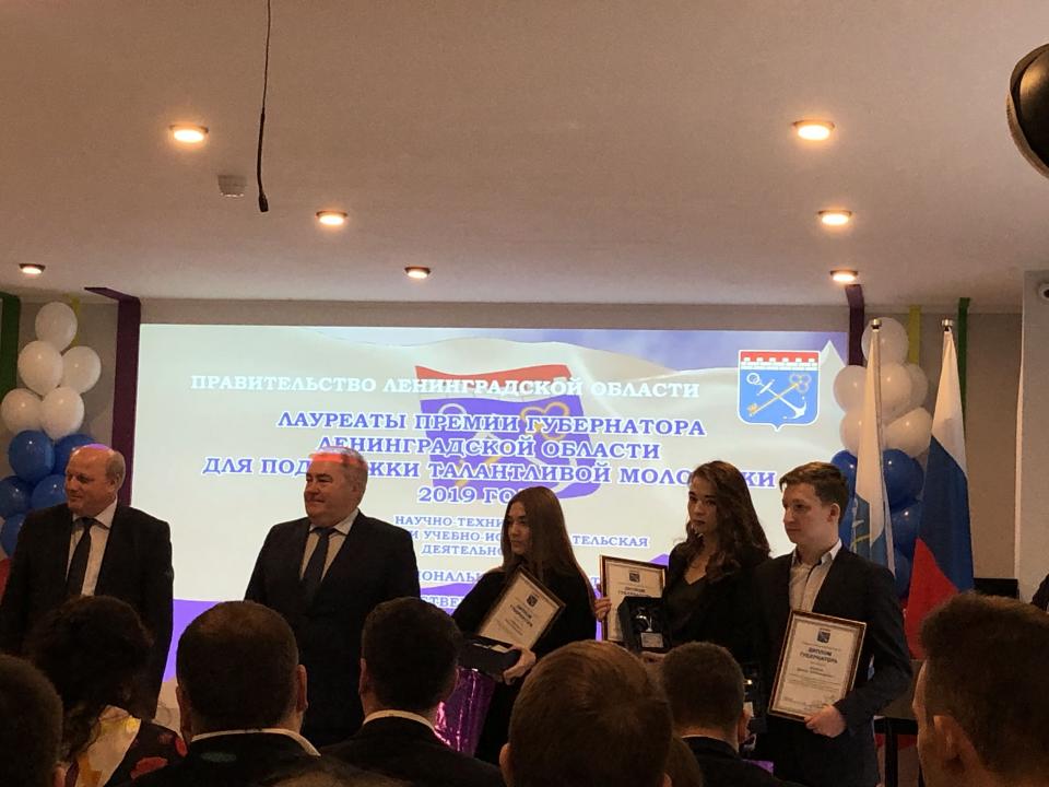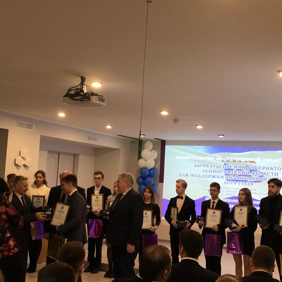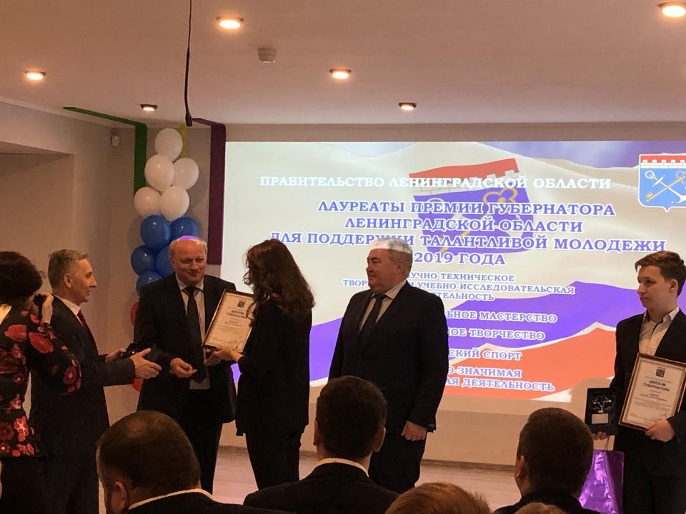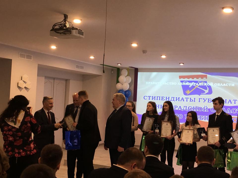 Премии, стипендии и дипломы губернатора Ленинградской области получили 57 представителей молодёжи, достигших высоких результатов в региональных олимпиадах и конкурсах, активно участвующие в общественно-политической жизни и реализации молодежных программ. В числе лауреатов и стипендиатов 2019 года были одаренные студенты выпускники образовательных учреждений, находящиеся в трудной жизненной ситуации, а также студенты-инвалиды, обучающиеся по очной форме обучения в государственных высших учебных заведениях. Среди них выпускники и обучающийся Кировского МР: