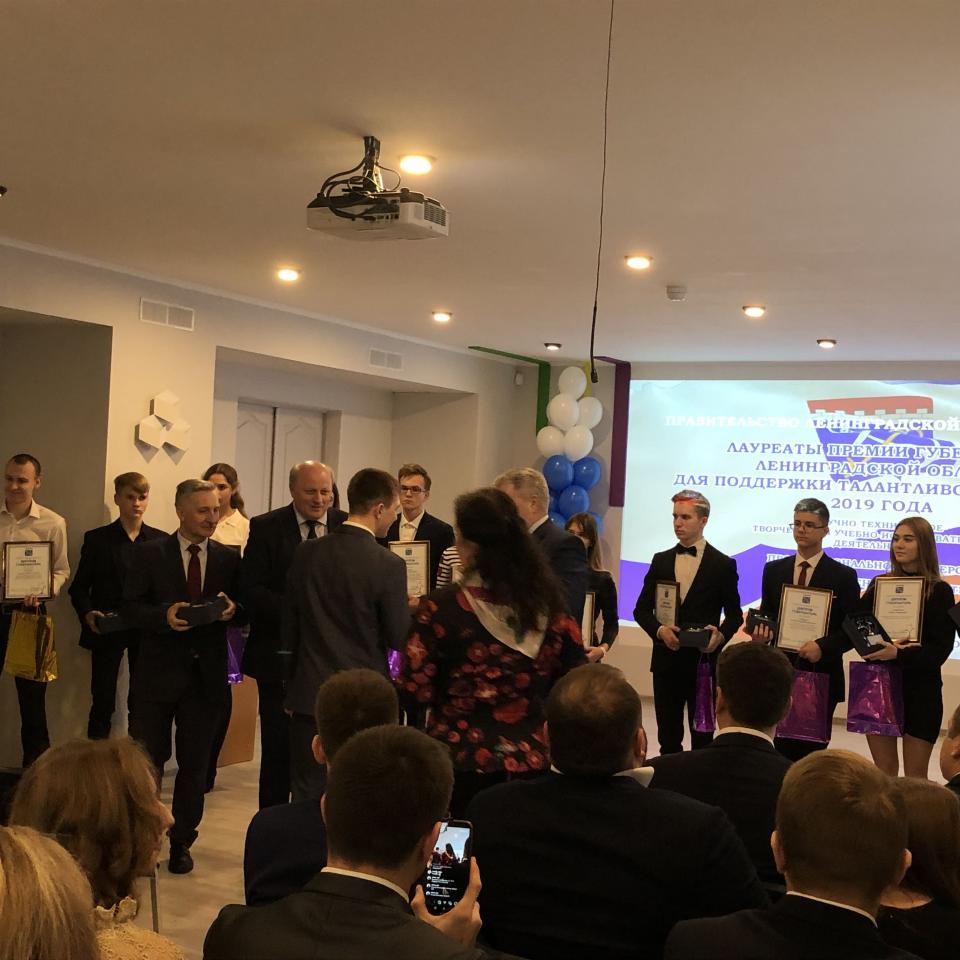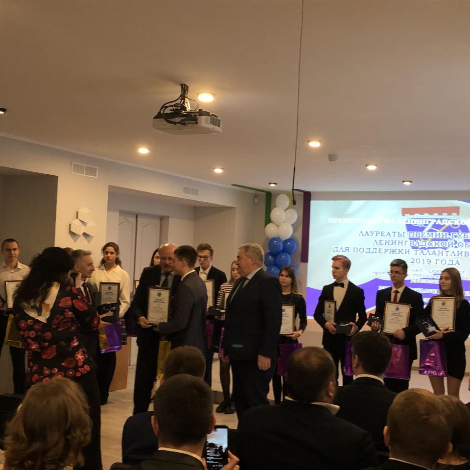 В образовательном центре «Интеллект» 17 декабря 2019г. прошла церемония чествования талантливой молодежи Ленинградской области по итогам 2019 года. Торжественное вручение наград прошло при участии Заместителя Председателя Правительства Ленинградской области по социальным вопросам Николая Емельянова, председателя комитета общего и профессионального образования Ленинградской области Сергея Тарасова и депутата Законодательного Собрания Ленинградской области Дмитрия Пулевского.